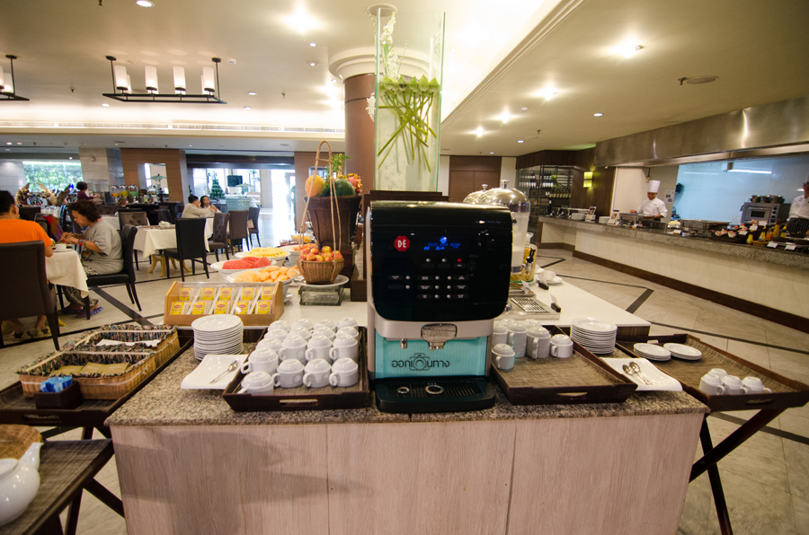 ตื่นเช้ามาสูดบรรยากาศสดชื่น อากาศเย็นสบาย มาทานอาหารเช้าของรีสอร์ท ซึ่งมีข้าวผัด ข้าวต้ม ใส้กรอก ไข่ดาว ออมเล็ต กับข้าว 3 อย่าง รสชาติโอเค แต่ไม่มีผลไม้ กาแฟ โอวันติน