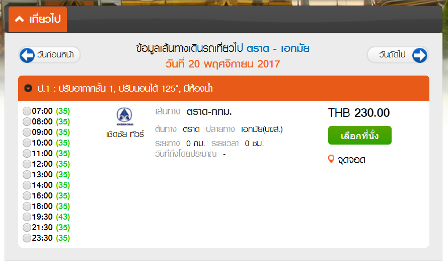 - ตราด –> กรุงเทพฯ | 230 บาท