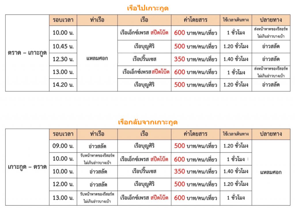 - ท่าเรือแหลมศอก –> เกาะกูด | 300 บาท